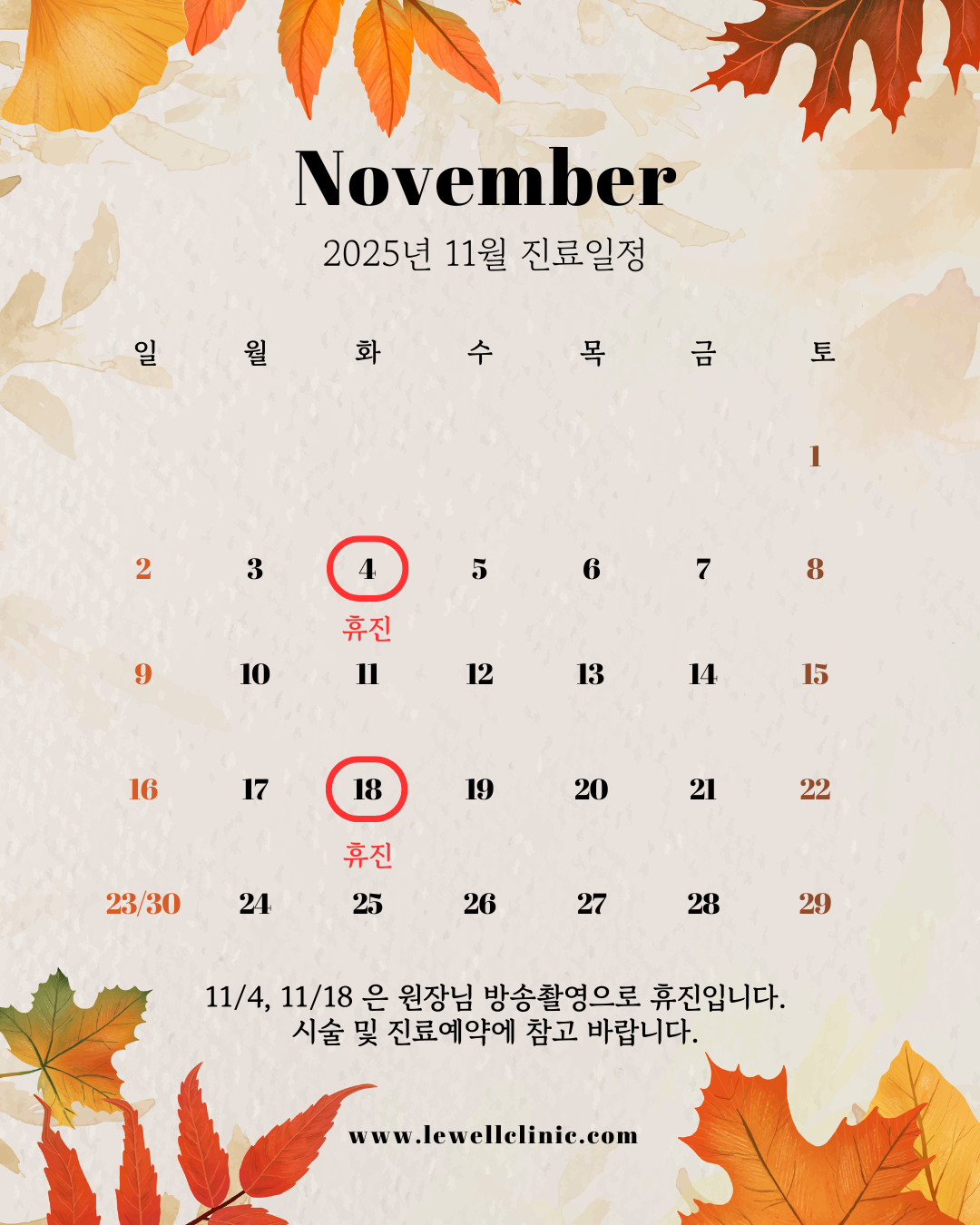 일요일, 공휴일은 휴진합니다.
